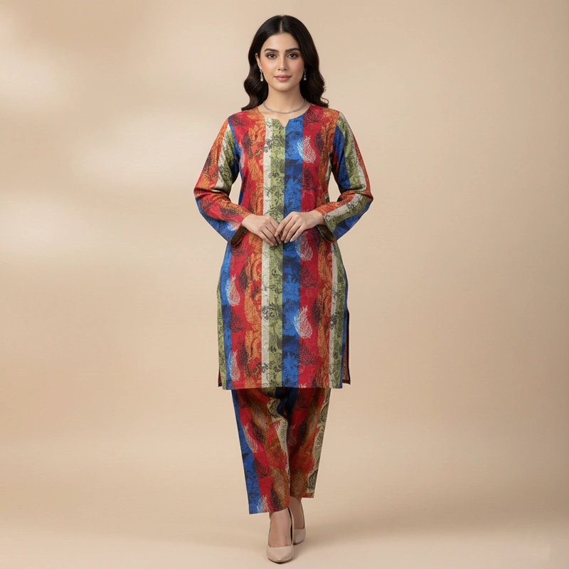 Experience the perfect blend of traditional warmth and contemporary style with our Vibrant Multi-Color 2-Piece Khadar Collection. This ensemble is specifically designed for the Pakistani winter, using a medium-weight, breathable Khadar fabric that keeps you cozy without the bulk.