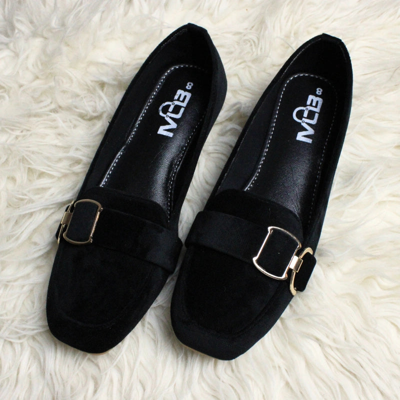 Chic Buckle Velvet Loafers