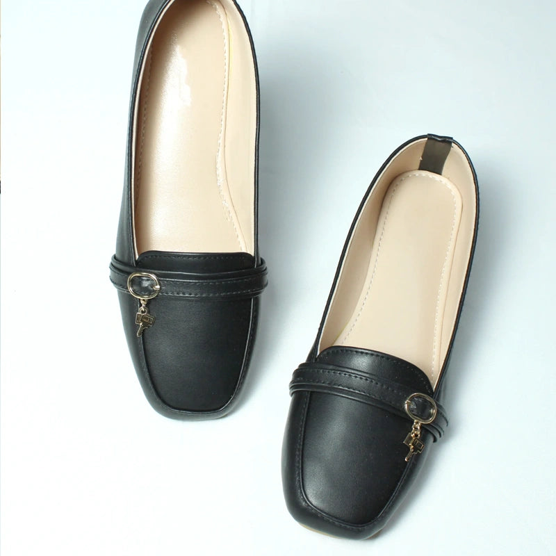 Whether paired with formal trousers or a casual dress, the Lock Key Buckle Loafers bring a polished finish to every outfit.